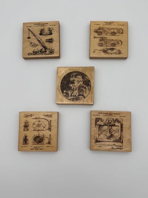 5 Coasters with holder. Great for your firefighter friend, family member or boss!