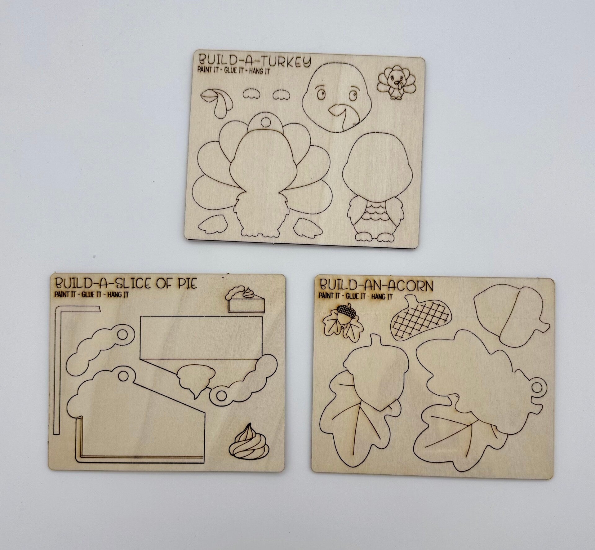 Kit comes with 1 paint brush, 5 assorted washable tempera paints colors and 1 bottle of washable non toxic glue for every 3 assorted wood pop out activites. Total of 3 unique designs.